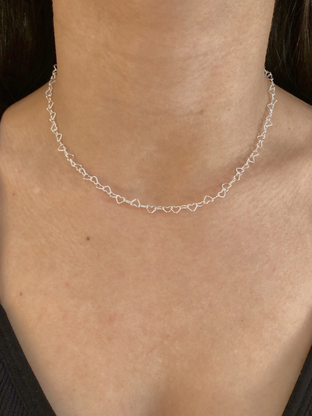 Com seu formato justo ao pescoço, a peça oferece um visual moderno e elegante, ideal tanto para o uso diário quanto para ocasiões especiais. Os corações entrelaçados trazem um simbolismo de amor, carinho e união, tornando o colar ainda mais especial e único.