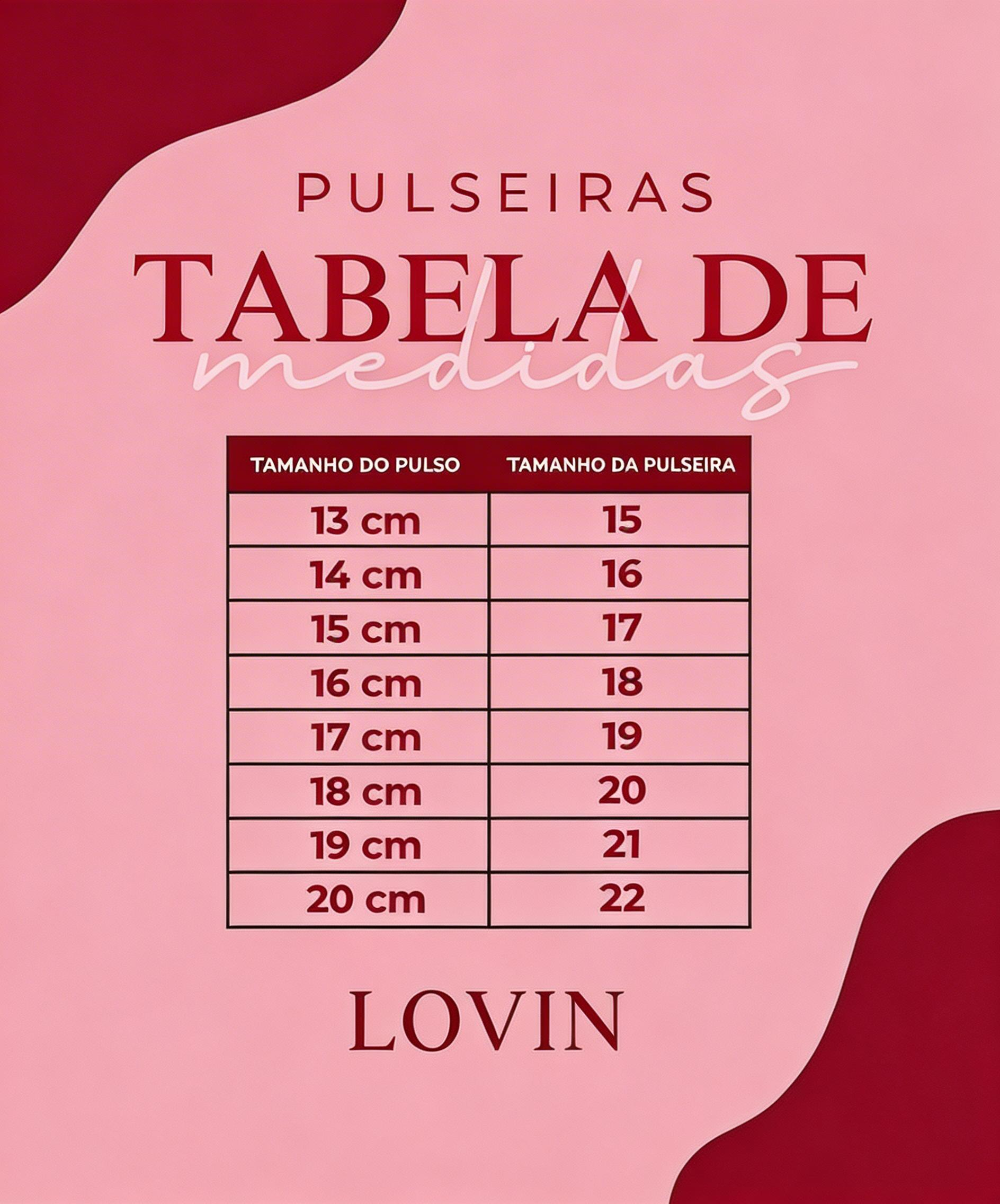 Pulseiras tabela de Medidas